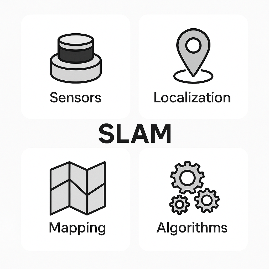 SLAM(Simultaneous Localization and Mapping)은 단순히 한 가지 기술이 아닙니다. 다양한 기능이 모여 서로 긴밀하게 작동하는 복합 시스템입니다. 이 장에서는 SLAM을 구성하는 핵심 요소들을 하나씩 살펴보겠습니다. 이 구성 요소들의 역할을 정확히 이해하는 것은 SLAM 시스템을 구현하거나 분석하는 데 반드시 필요한 기초입니다.